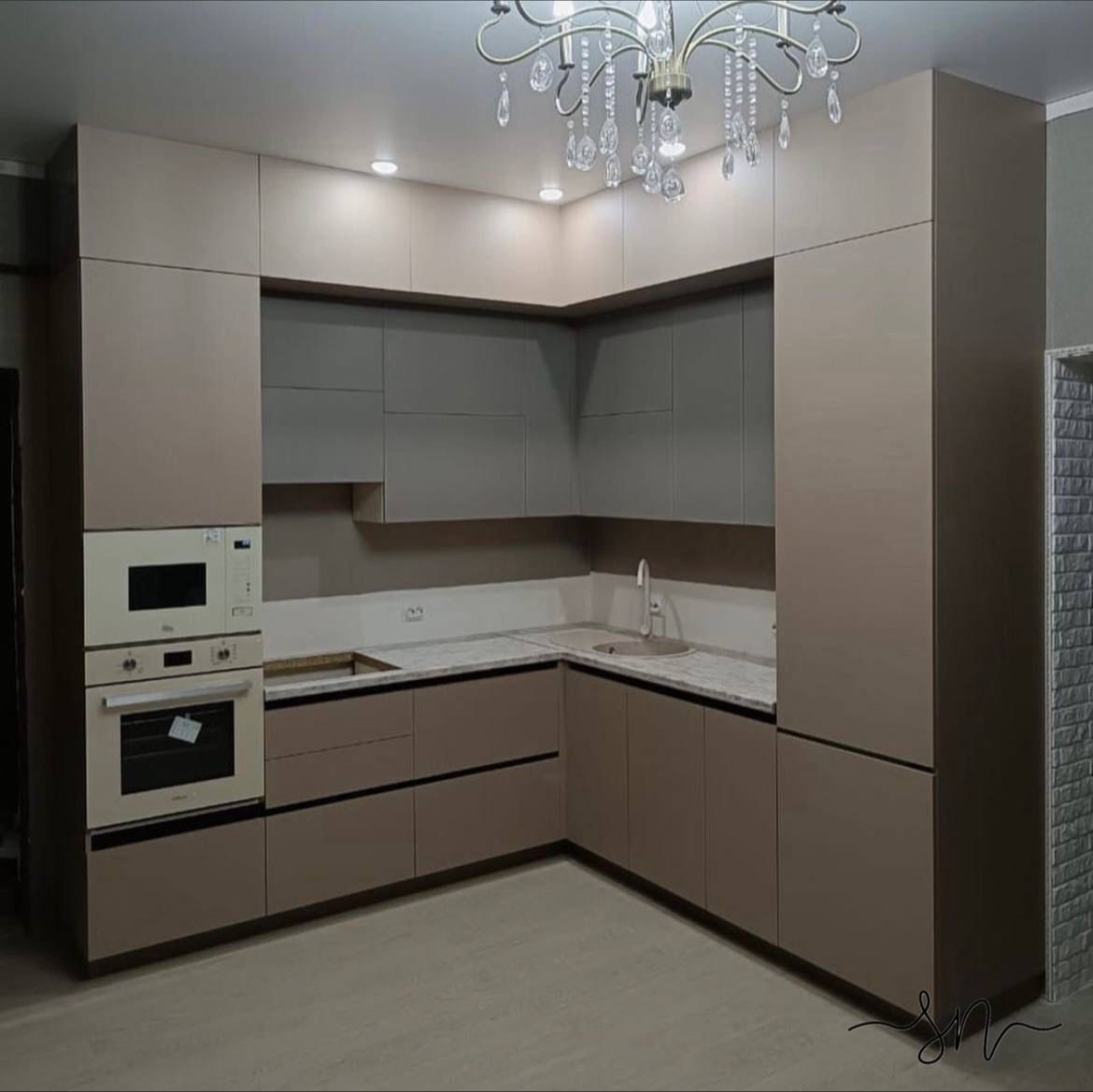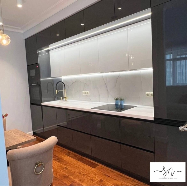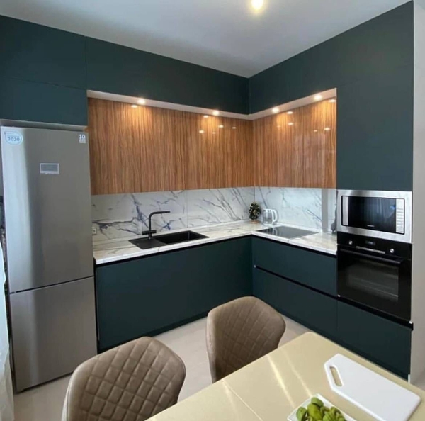 Глаза уже не те, не могу сам кухню собрать. Обратился к Мише, дак мы не то, что кухню собрали, мы ещё и технику установили, холодильник встроили, розетки вывели и в мебель спрятали. Столешницу сделали как барную стойку. Спасибо!